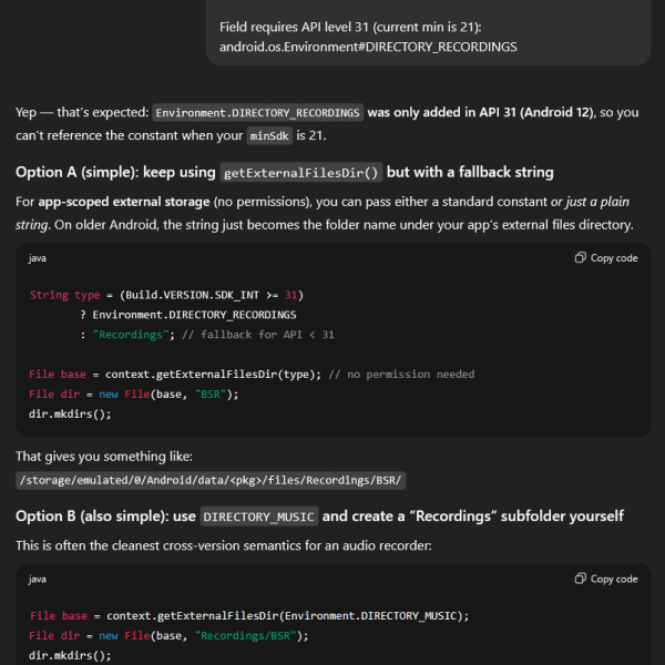 Множество изменений было внесено в код BSR в версии 2.70: заменены устаревшие компоненты, интерфейс заменён на AndroidX (выглядит так же как и прежде). Заменены не самые свежие версии сторонние компоненты, такие как библиотеки функций для доступа к Google Drive и Dropbox.